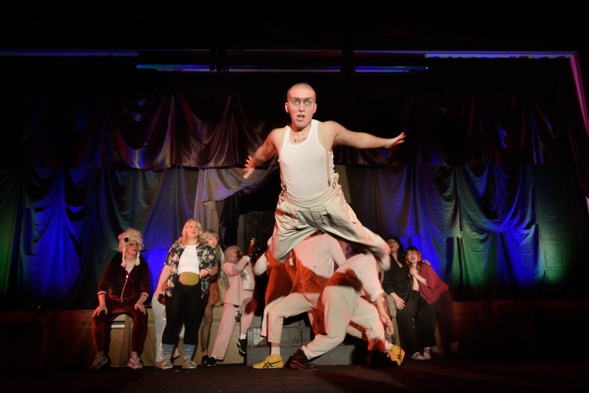 From free-speech cults to fever dreams, AI tech to your own unshakable reflection, this surreal, satirical spectacle blends sketch comedy, live music, dance battles and high-camp horror in a night of theatrical mischief.