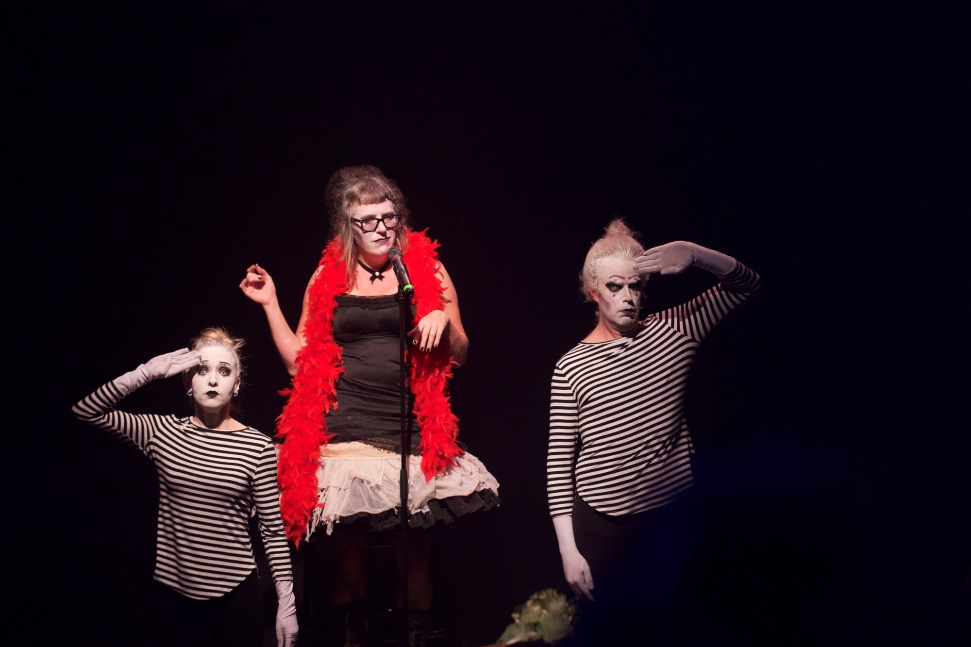 “Production/Set/Costume Designer Jimbo (Ru Paul’s Drag Race) brought a very clear and specific aesthetic drawing from drag, speakeasy, burlesque, circus, and cabaret sensibilities, fusing them all into one very specific and immersive world.”