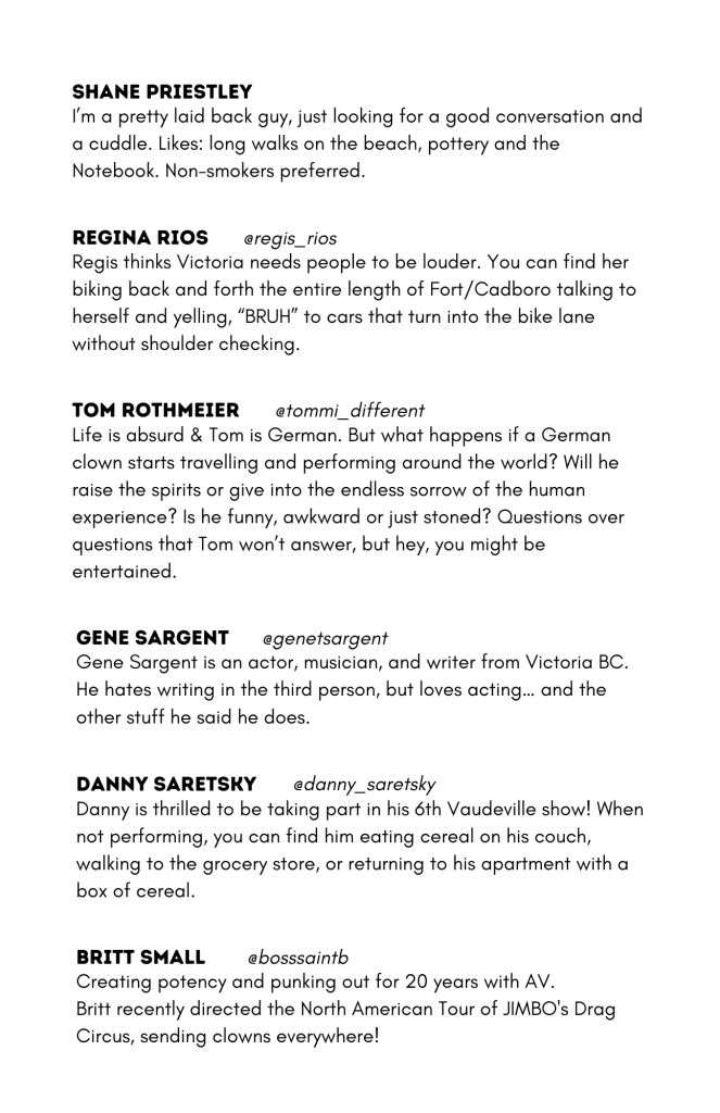 Fill in the form and e-transfer $20 (plus optional delivery charge) to admin@atomicvaudeville.com to claim your copy, or get one at the spring show!